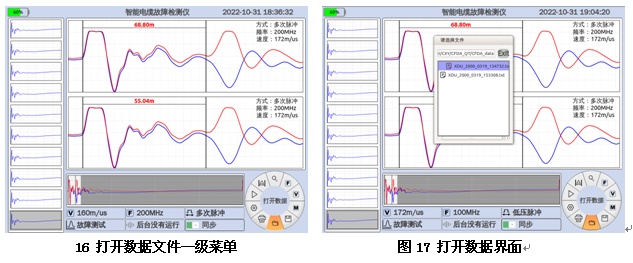如圖16所示,旋轉旋鈕使得焦點切換至,按下旋鈕按鍵進入打開數據界面。如圖17所示,旋轉旋鈕切換焦點,按下旋鈕按鍵便可打開該組數據并退出該界面。